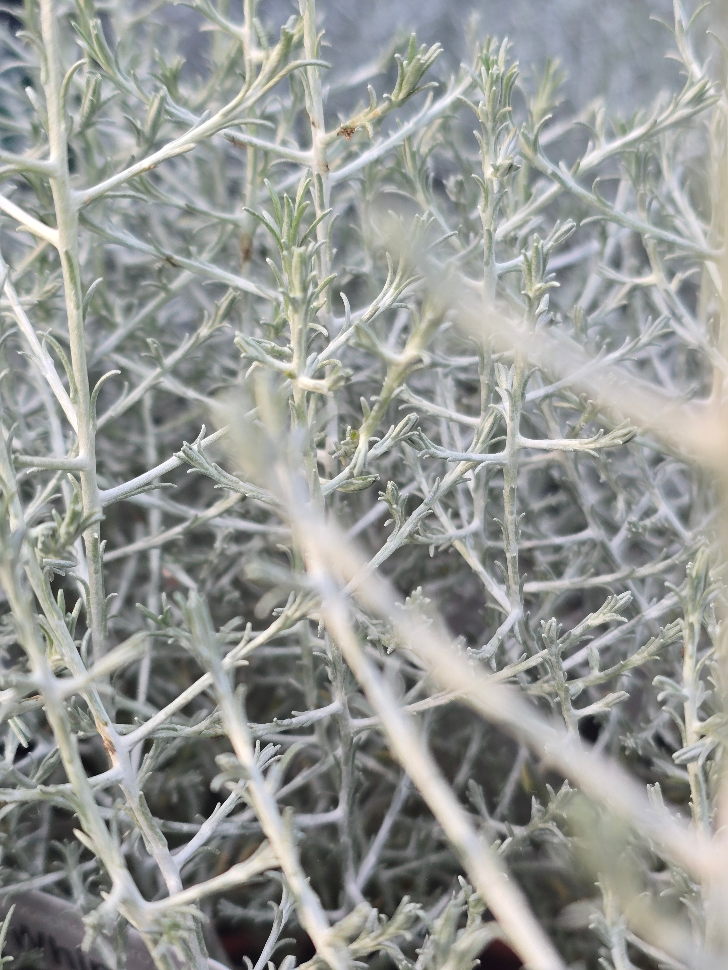 Fantastic evergreen or should we say eversilver shrub that has to many uses. The foliage is a crisscross of silvery-white wiry stems which for a lovely mound like shape. Use in hanging basket or window boxes for all year colour. Fantastic planted into the border where, once established they will be drought tolerant. We use them here on the nursery for our floral workshops and expect to see them in our floral displays at the flowers sows we are attending in 2026. Mature height and spread 60cm. Full sun. Copes with costal winds.